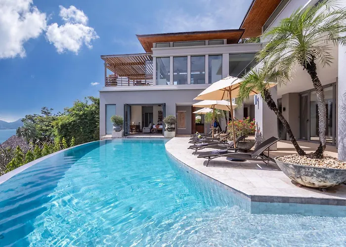 Situated approximately a 10-minute drive from Patong Beach, the 5-bedroom Villa Fah Sai Phuket features a terrace with views of the sea.